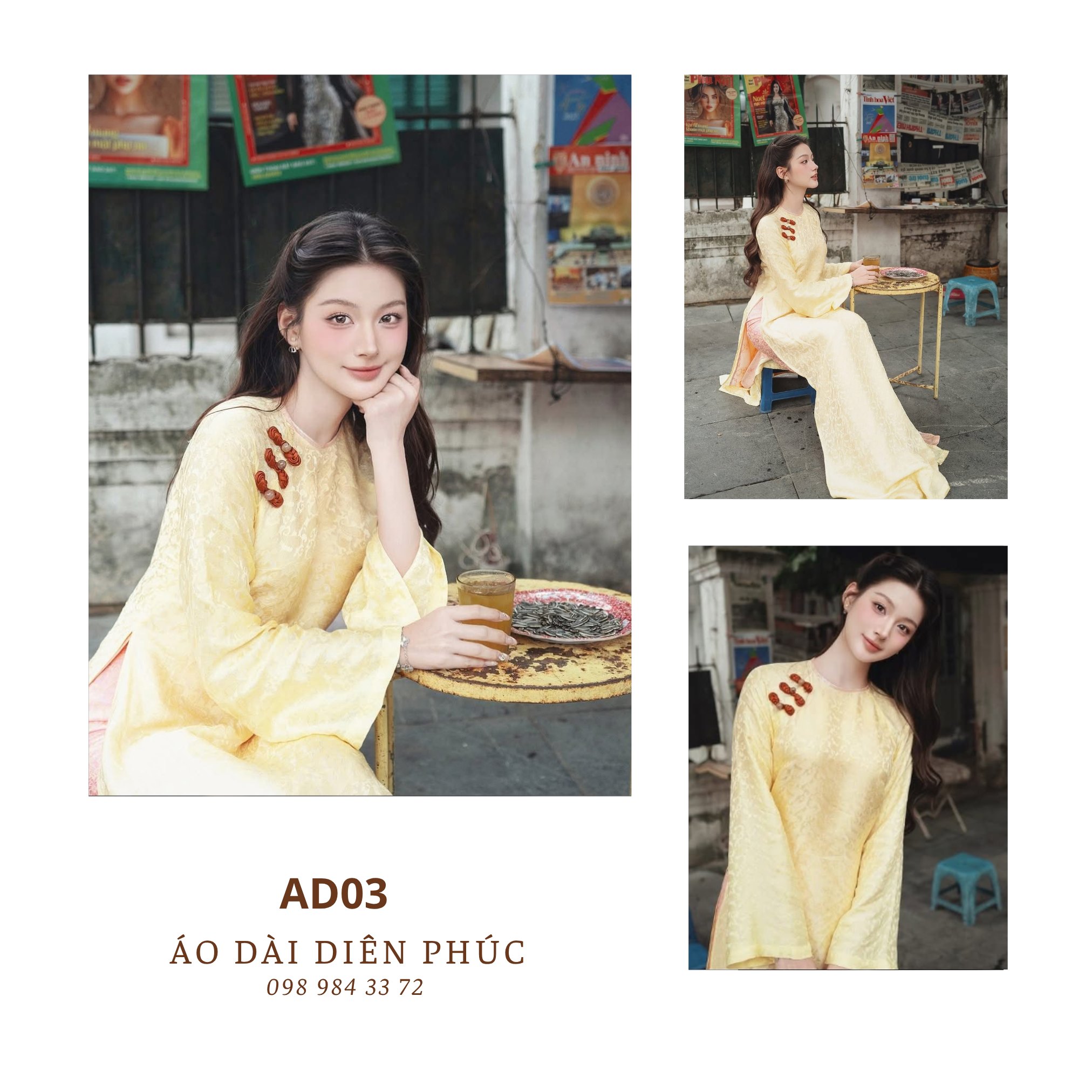 Trở về với nét đẹp hoài cổ và quý phái của những thập niên trước, Áo Dài AD03 DIỆN PHÚC là sự kết hợp hoàn hảo giữa màu vàng tươi rực rỡ và chất liệu gấm/lụa dập hoa nổi độc đáo.